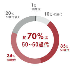 一番多い年齢層は、70歳以上と思われがちですが、50~60歳代が実に約70%を占めています。特に多い年齢層は、55歳前後のオーナーです。 あと10年は奥様と一緒に海外旅行をしたい、体力のある時に好きな事をしたいなど、時間はお金で買えない、一度きりの人生、第二の人生を謳歌したい、という方が殆どです。